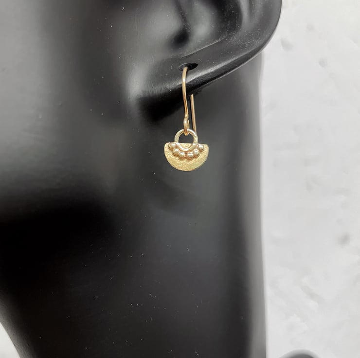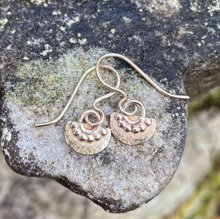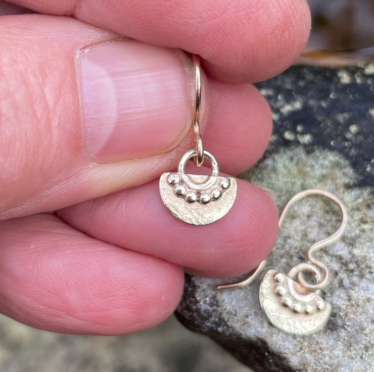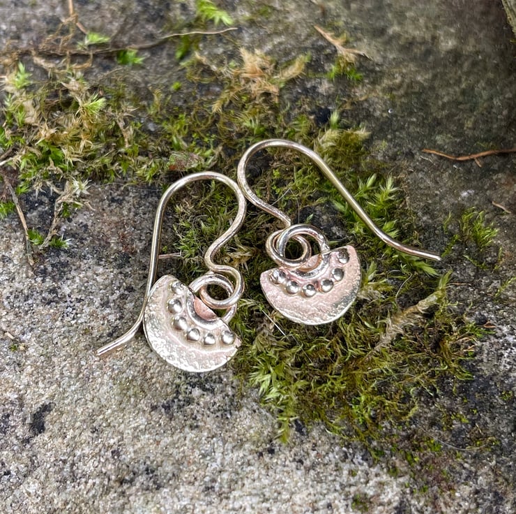 I have made some little semi circular dangles with a raised bead pattern, they hang from handmade hooks.