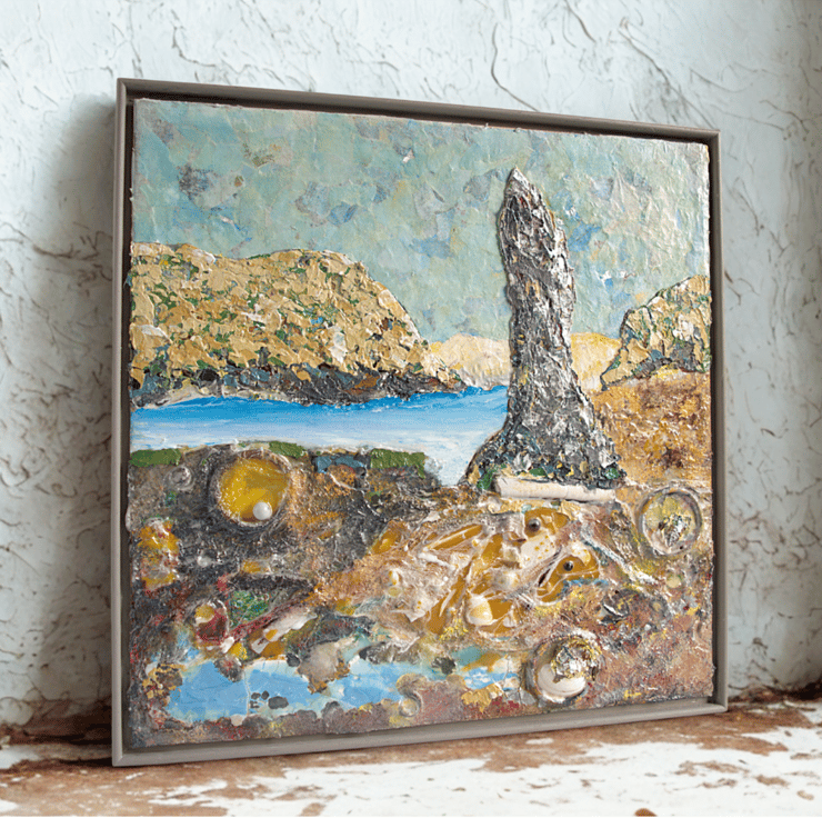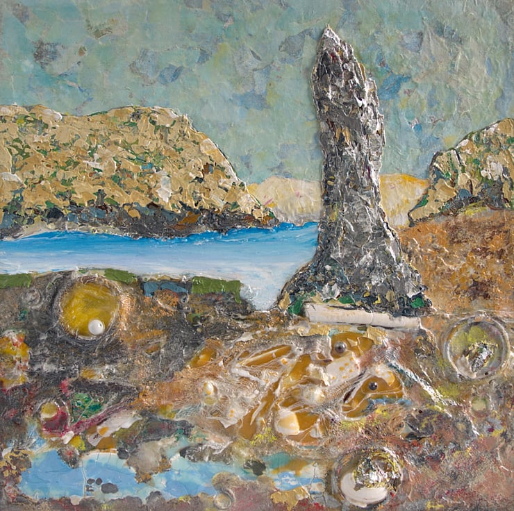 This is an original mixed media Scottish landscape. It is based on my travels to the Scottish islands over the years. It is presented in a wooden box frame.