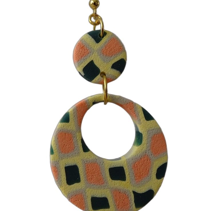 These colourful statement earrings brighten any outfit — whether you’re adding flair to a casual day or dressing up for something special. Their geometric charm and warm pastel palette make them a joyful, wearable piece of art.