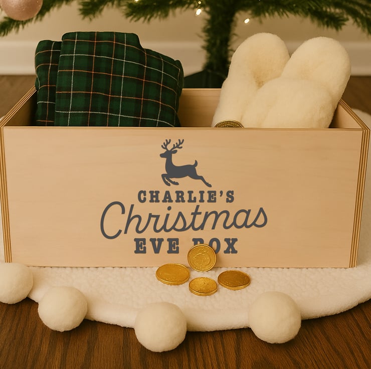Celebrate Christmas Eve in timeless style with our Reindeer Christmas Eve Box sticker. This elegant design features a leaping reindeer above your personalised name in festive script – the perfect way to make your child’s Christmas Eve box extra special.