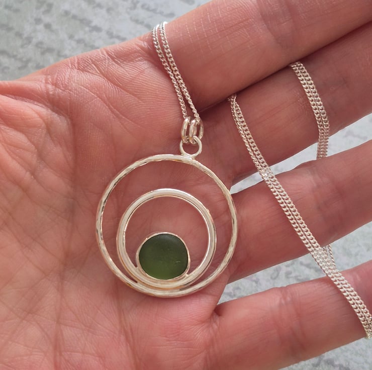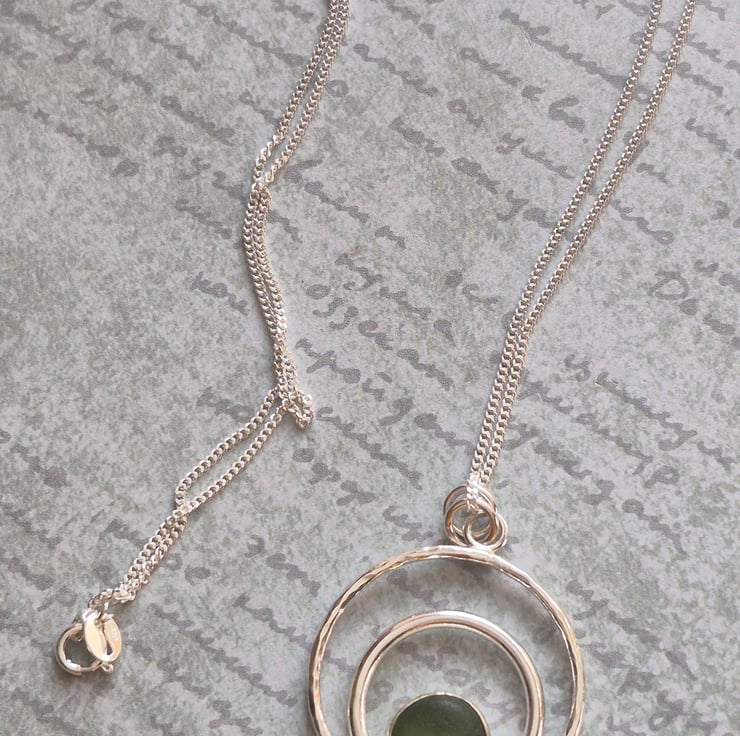 Beautiful Double Circle Pendant Olive Seaham Seaglass Necklace Sterling Silver