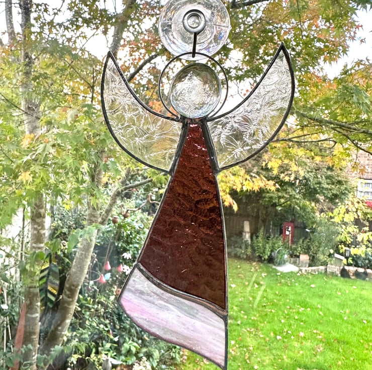 Angel Suncatcher made in beautiful stained glass by Carole’s Glass.