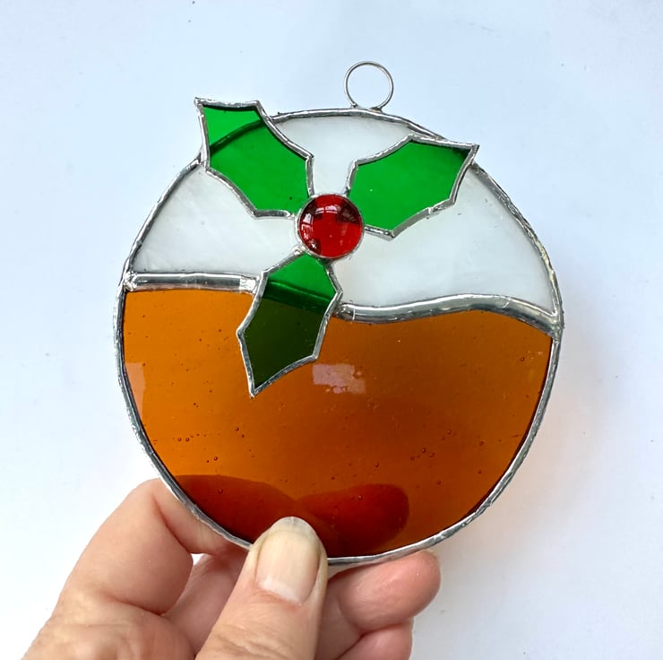 Stained Glass Christmas Pudding Suncatcher - Handmade Window Decoration