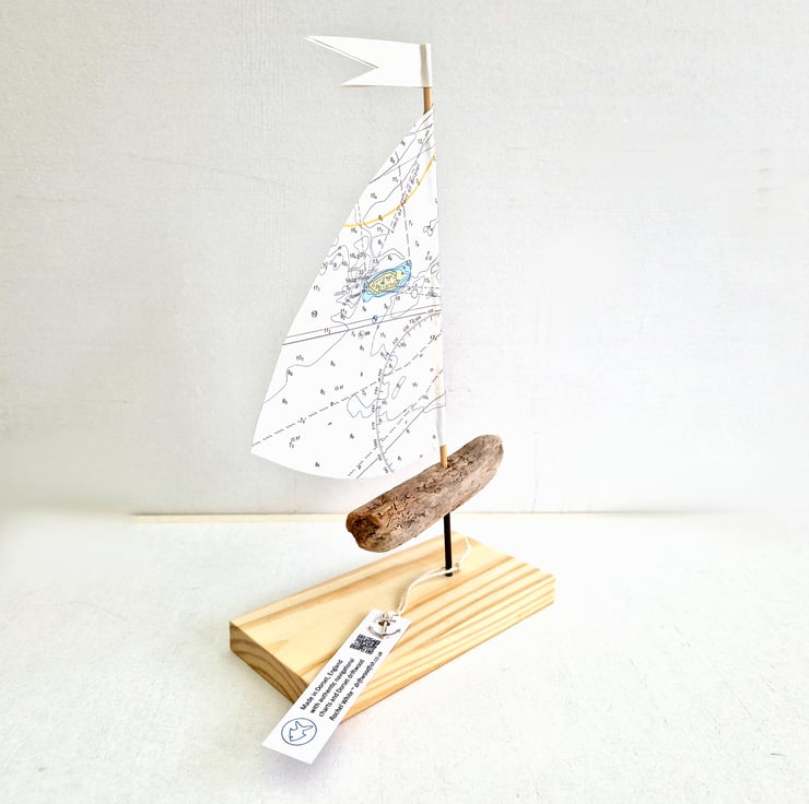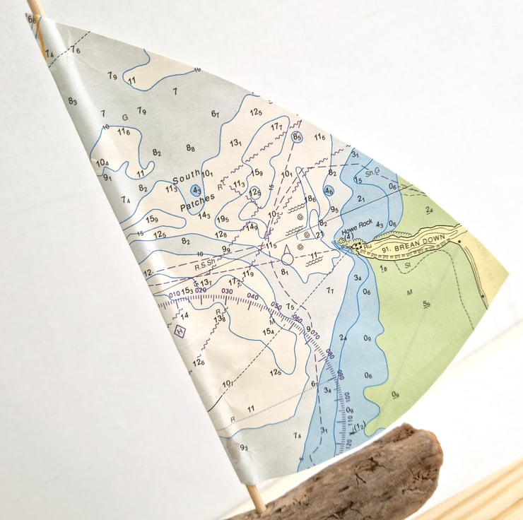 Sails are made from authentic repurposed nautical maps which have been used on voyages around the British Isles, and some may have small handwritten annotations: please check the images to view.