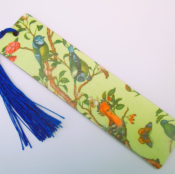 A lovely decoupage wood bookmark with a matching tassel. The picture is on one side and the other side is natural wood. The size of the bookmark is 15 x 3.8cm. There maybe an odd crinkle on your ornament, but that is completely normal for anything made with decoupage.