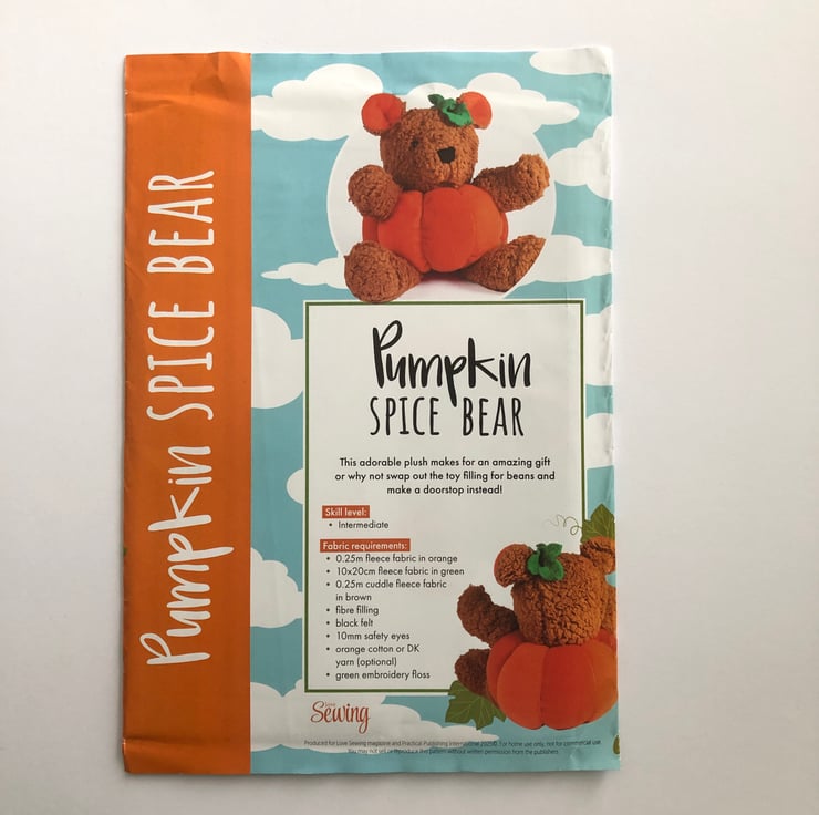 This is a listing for a new and unopened sewing pattern for a cute plush Teddy bear, the pumpkin bear. You could use this pattern to make an adorable plush or a doorstop.