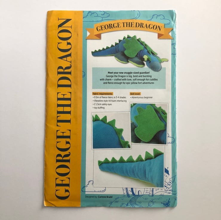 This is a listing for a new and unopened sewing pattern for a cute plush dragon, George the dragon toy. You could use this pattern to make an adorable plush toy or a doorstop.