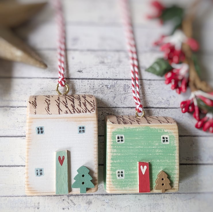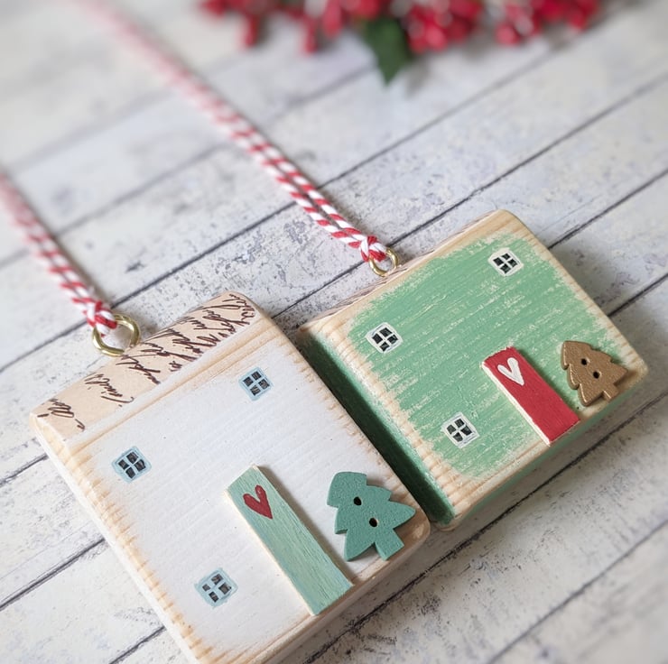 I have chosen two houses that compliment each other for this little set. Hang them together or give one as a gift!
