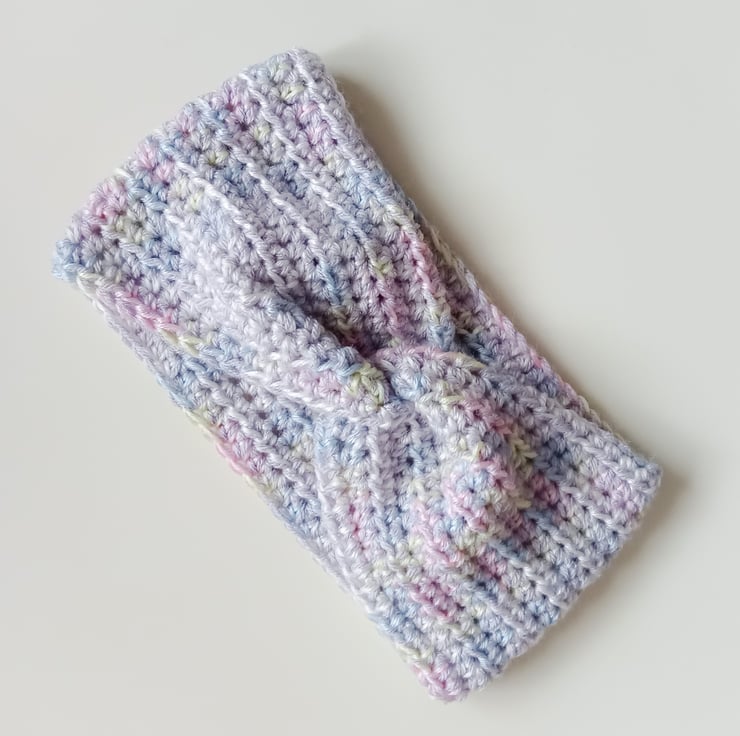 Composition: The headband is crochet flat and then joined into a circle with a twist at the front.