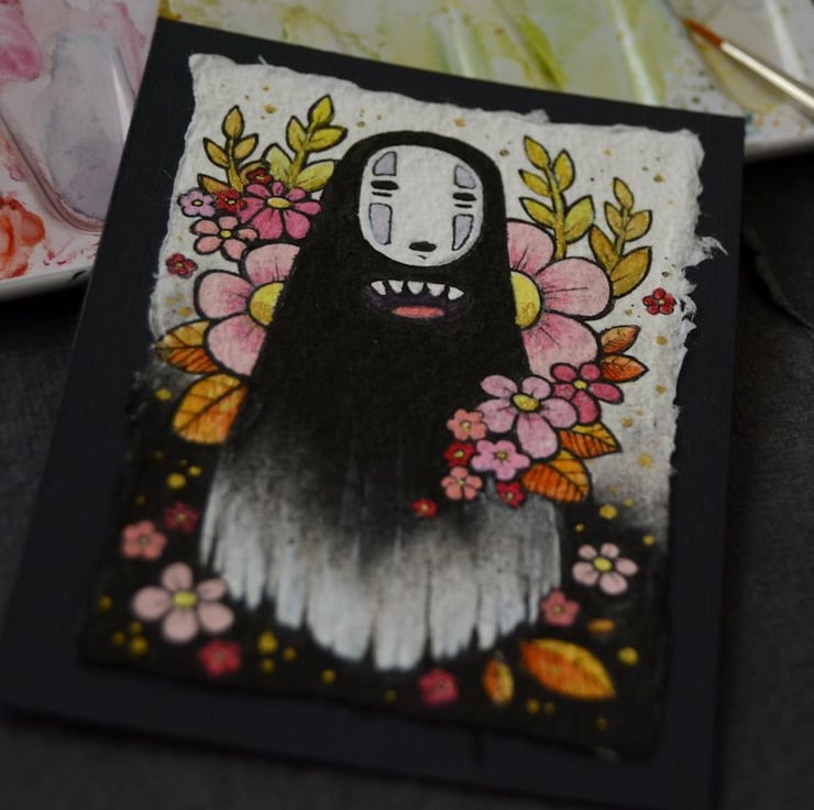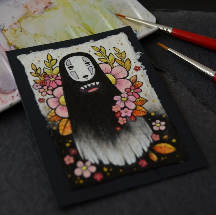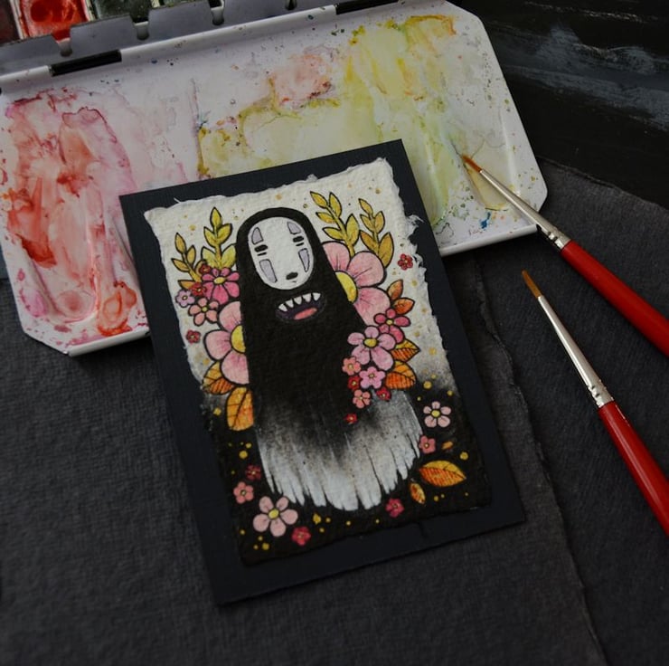 i created a ghost a day for the entire month of october! i made this one on day 30, to celebrate nearing the end of the month. my favourite spirit in all the world (or other world)... "no face", from the film "spirited away".