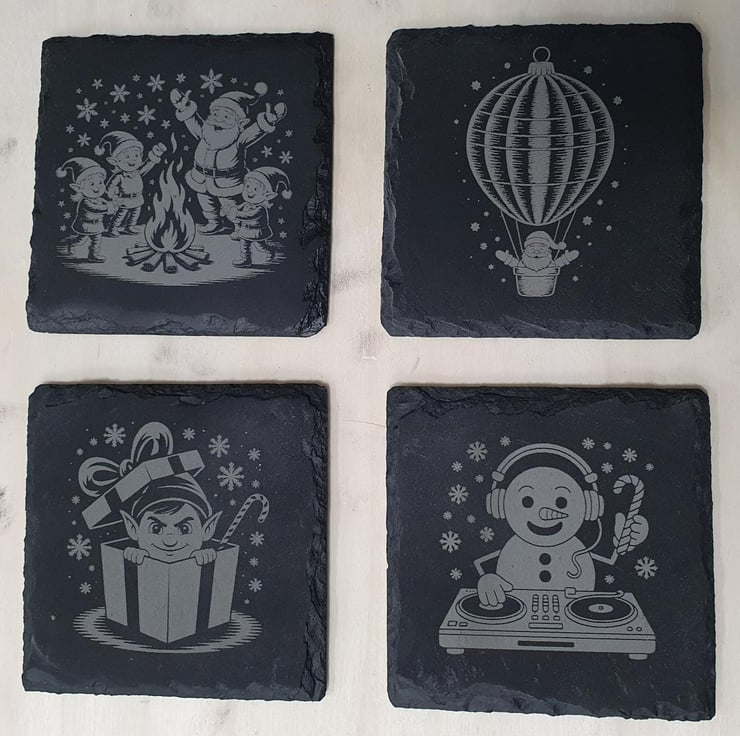 Each coaster is made from natural slate, carefully laser-engraved with fine festive detail that will last for years to come. The rich, dark texture of the slate contrasts beautifully with the engraved design, giving each piece a rustic yet elegant finish.