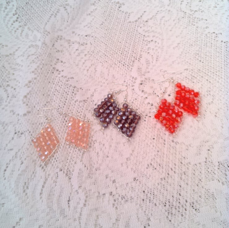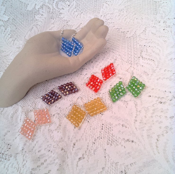 Crystal Beaded Diamond Shaped Earrings, Crystal Earrings, Gift For Her, Earrings, Colour Choice, Birthday Gift, Anniversary Gift, Earrings, Crystal Earrings, Diamond Shaped Earrings