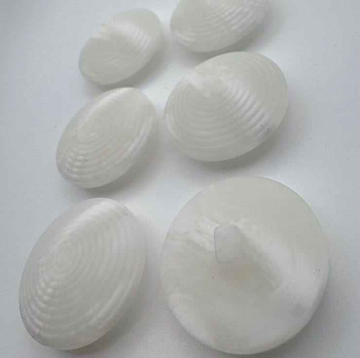 These Fabulous White Cone Shaped Buttons with a Shank Back, sold in Packs of 6, are a large 30mm wide.