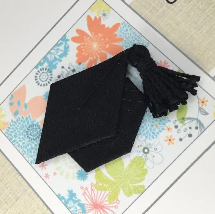 I just love these little mortar board embellishments as the tassels swing. It has been mounted on a floral background which adds a pop of colour.