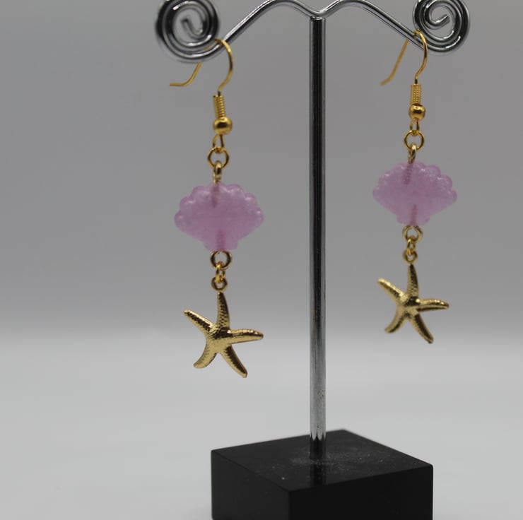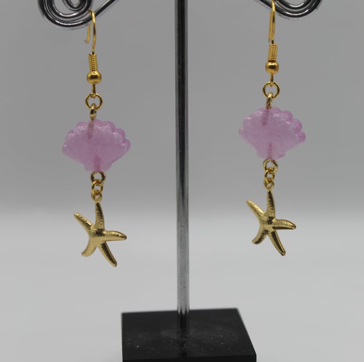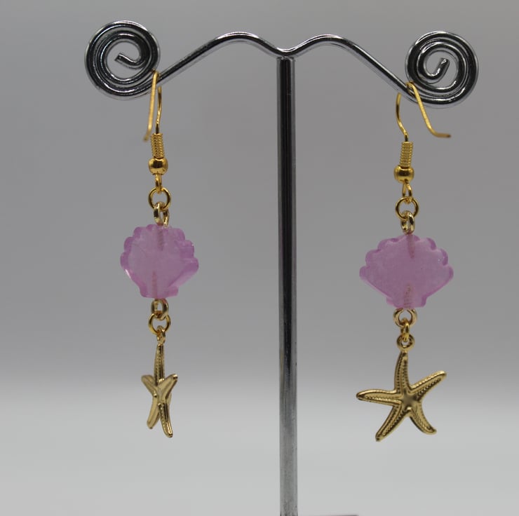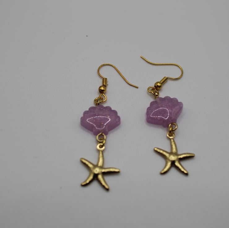 Bring a touch of mermaid magic to your day with these shimmering shell and starfish earrings.