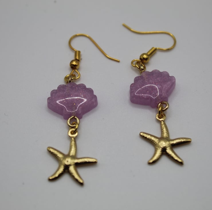 Shell Resin Earrings, Starfish Charm Earrings, Gift for Mermaids, Jewellery Gift