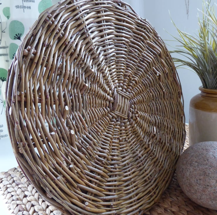 This is a round, sloping sided basket. Which will bring some nature into your home, and is useful too. This is an attractive storage basket or plant pot holder (make sure you protect the base from water e.g. using a plant pot saucer or use a pot that holds water).
