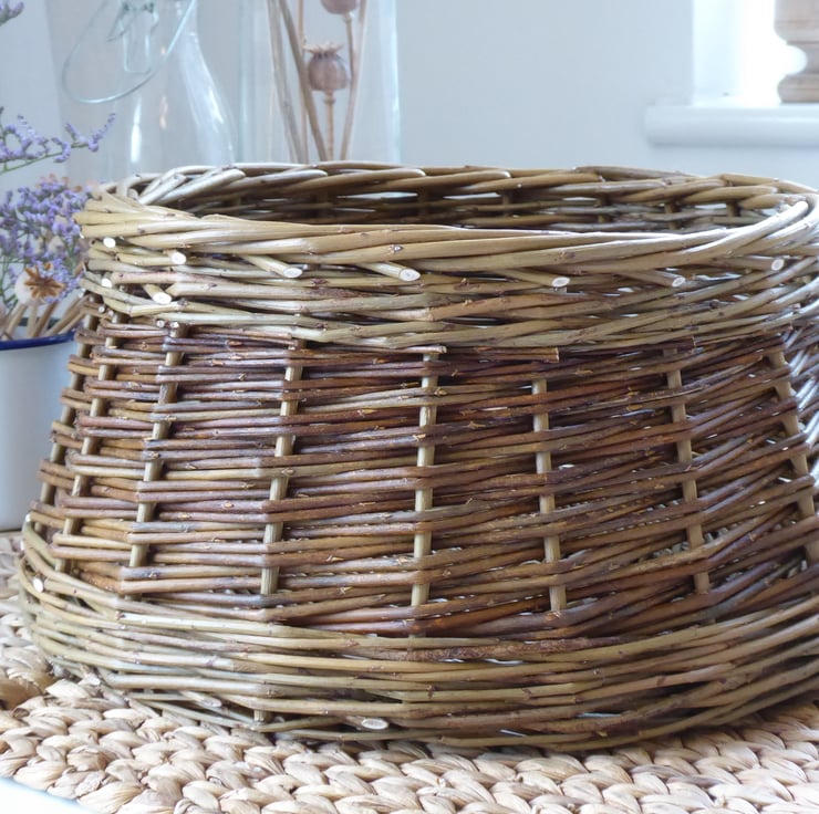 I used 3ft, 4ft and 5ft long willow which would have been counted out, soaked for three to five days, and left to mellow overnight before being woven into this decorative and useful basket