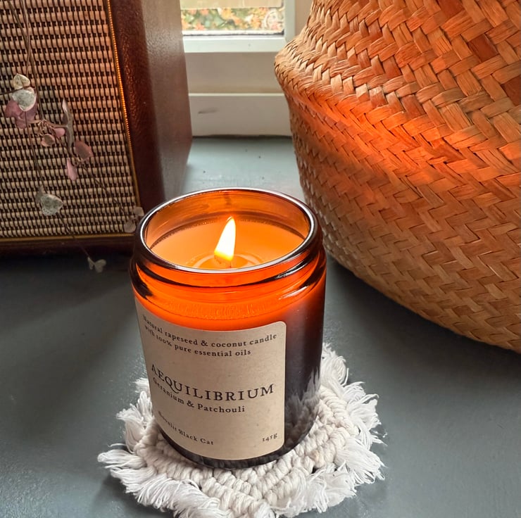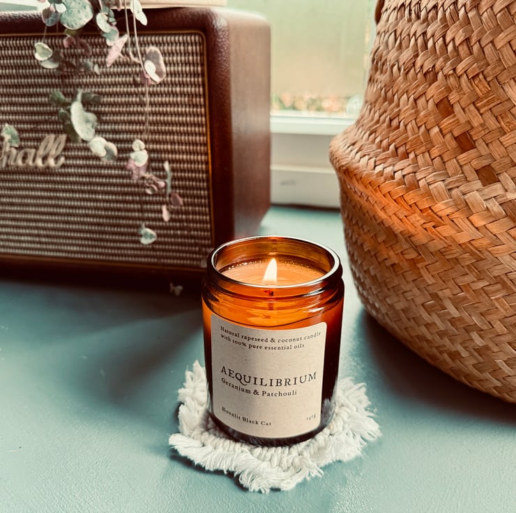 Rapeseed and coconut wax infused with pure essential oils of Patchouli and Geranium. The perfect pairing: grounding Patchouli and uplifting Geranium come together in delicate balance, creating a scent that restores harmony and calm.