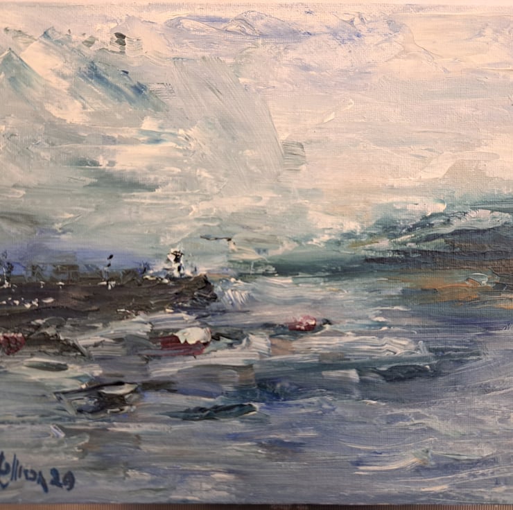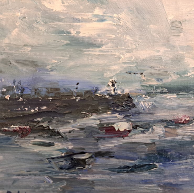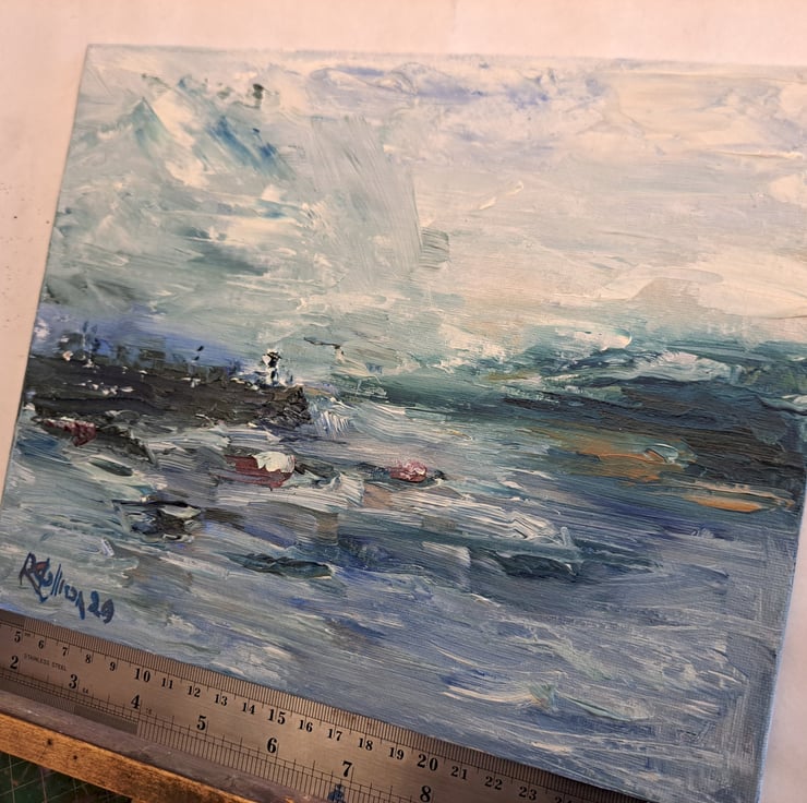 Expressionist Seascape painting inspired by the many holidays I have taken in Cornwall. Painted in Acrylics on 3mm canvas panel.