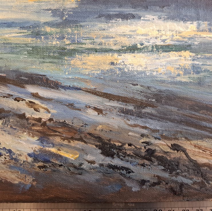 What catches my eye looking out at the sea is often the light on the water, also I wanted to capture the warm vs cold mixture of beach and water.
