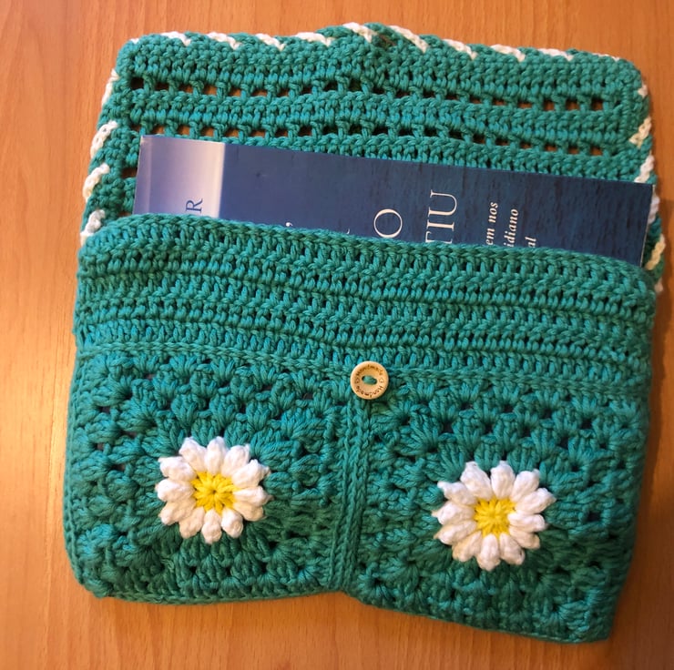 Handmade Crochet Book Sleeve & Flower Bookmark Gift Set – reading lover gift