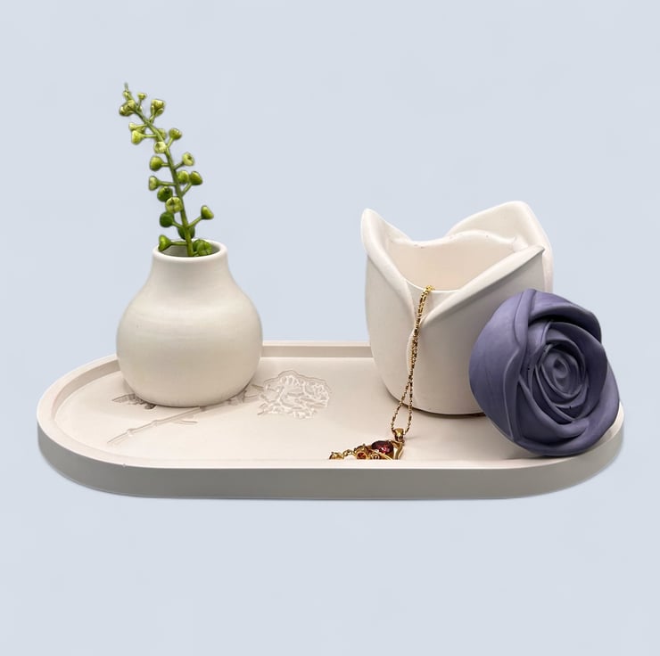 This trinket pot is not only beautiful but also incredibly practical. It is ideal for storing keepsakes, jewellery or any small treasures you hold dear. Styled lovingly on a white decorative tray, as seen in the photos, it makes a striking addition to any space. Purchasing the trinket pot and tray together offers an outstanding value and a perfectly coordinated look.