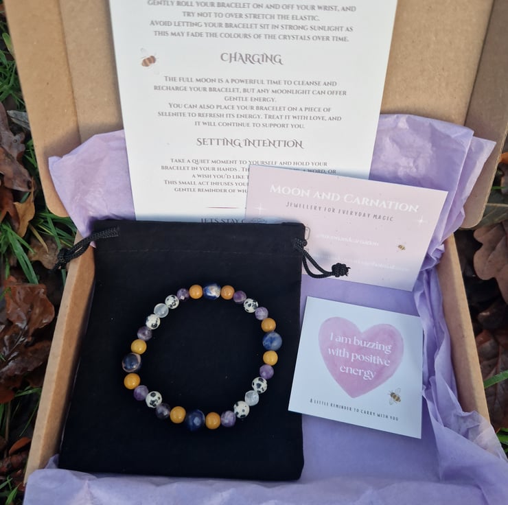 This bracelet is made with a mix of 8mm and 6mm beads for everyday comfort, and I double the elastic for lasting strength. Every bracelet is smoke cleansed before posting and gift wrapped in tissue paper ready to gift to yourself, or someone else.