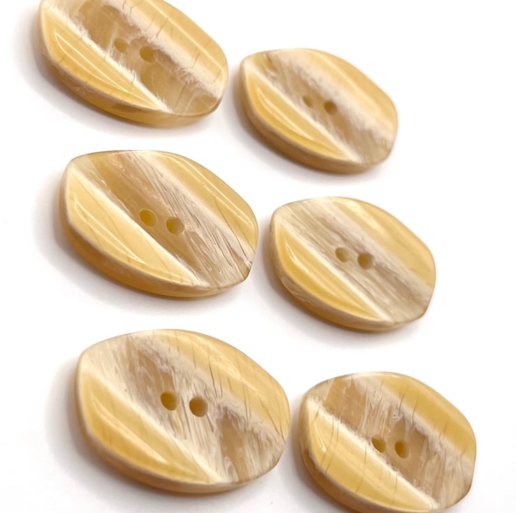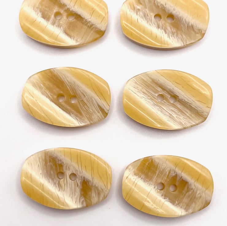 These Packs of 6 Yellow Oval-Style Buttons with a Textured Carved Stripes Design are perfect for your sewing, everyday clothing, knitting, accessorising and crafting makes. Also perfect for your Chunky Knits!