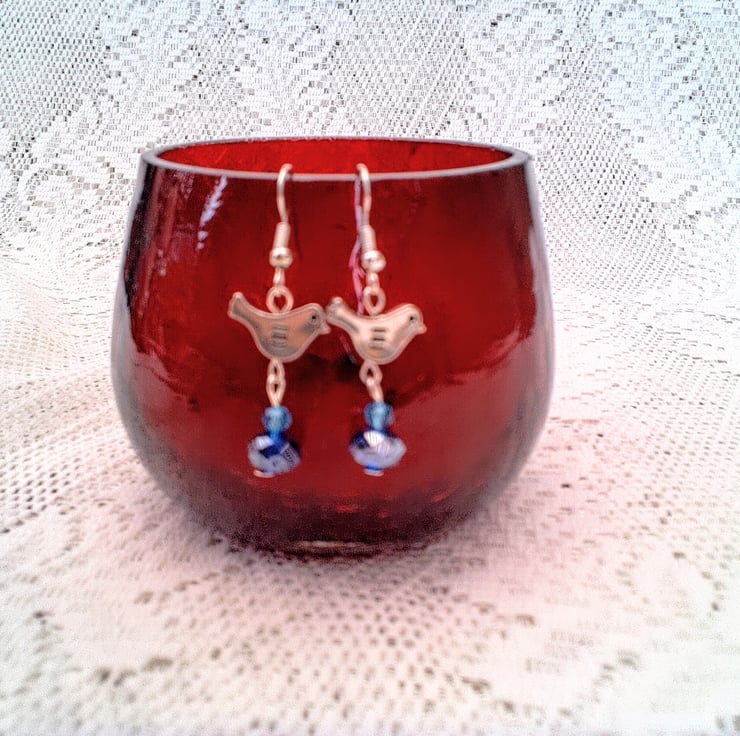 Silver Bird and Blue Crystal Earrings, Blue Earrings, Gift for Her, Bird Earring, Jewellery, Crystal Earrings, Silver Bird Earrings, Birthday Gift, Anniversary Gift, Christmas Gift, Stocking Filler, Silver and Blue Earrings