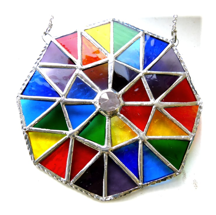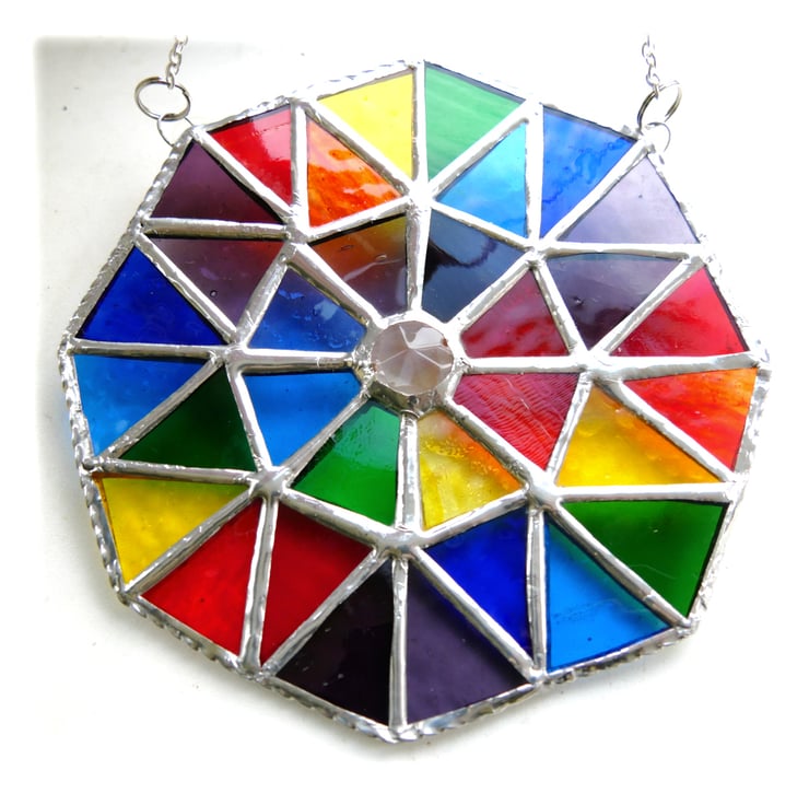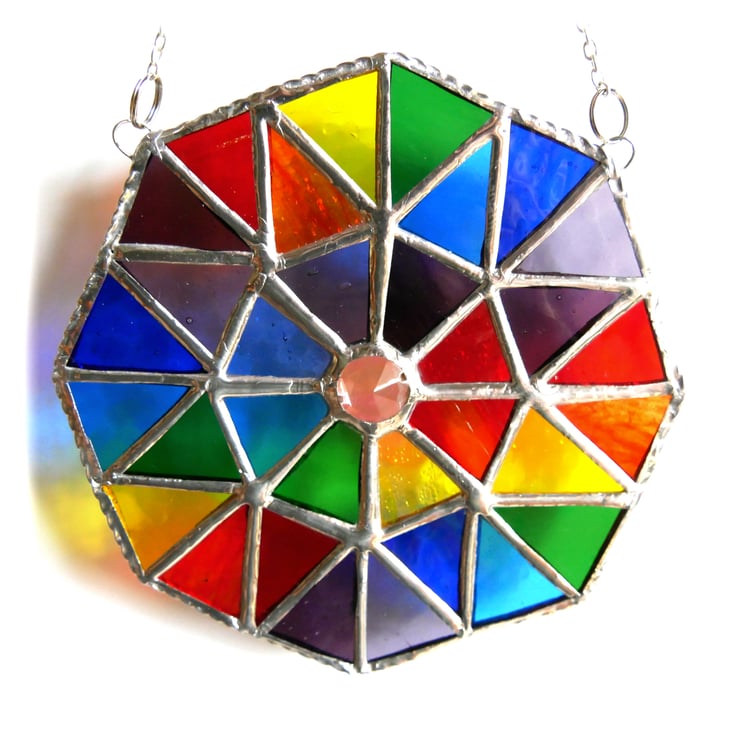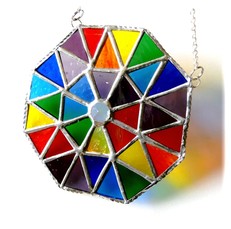 Rainbow Patchwork Octagon Suncatcher Stained Glass Handmade 008