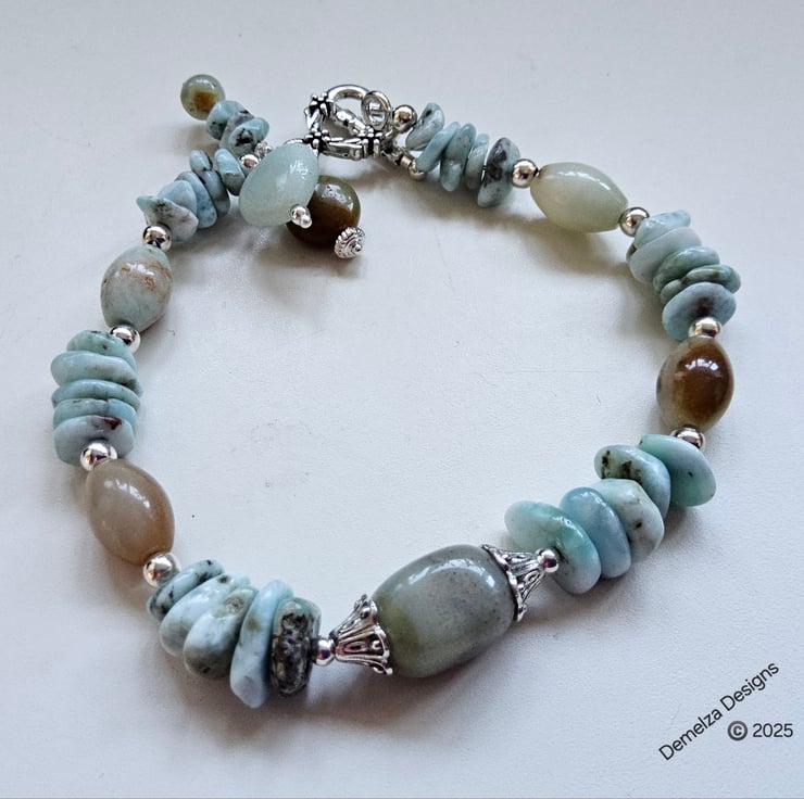 Designer Artisan Larimar & Amazonite Bracelet Silver Plated