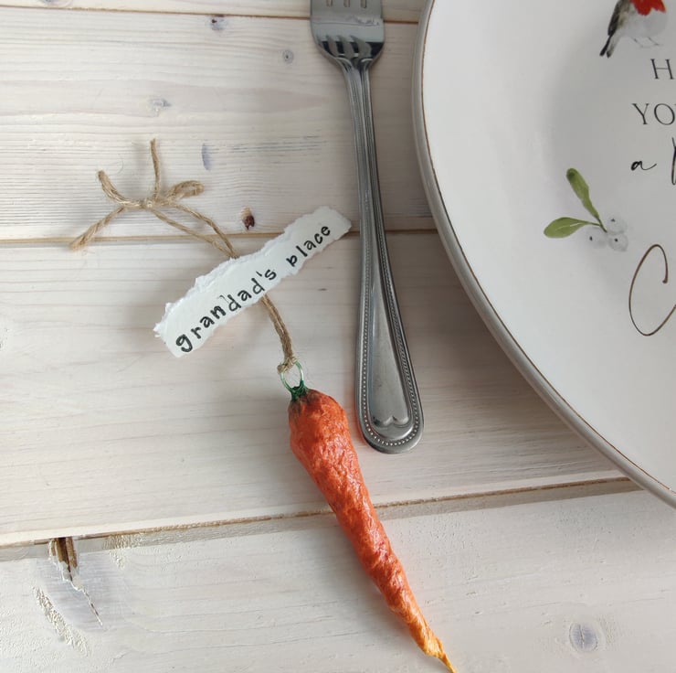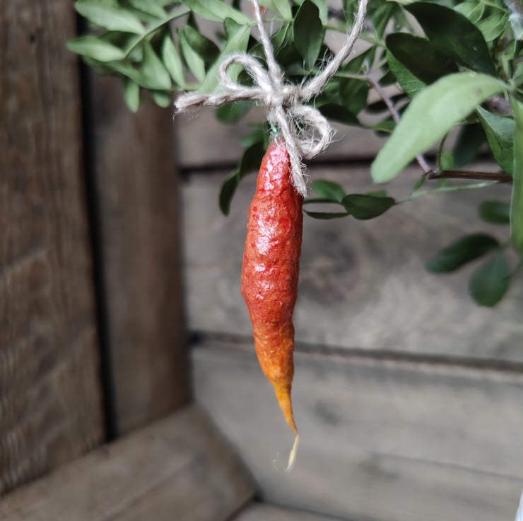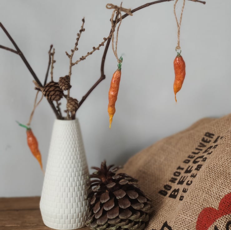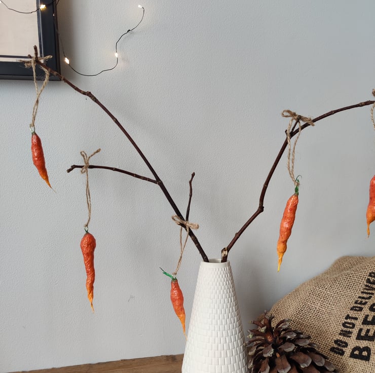 These hanging carrots are handmade from cotton wool and hand-painted ... No two are alike!