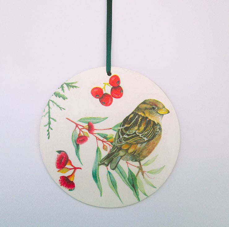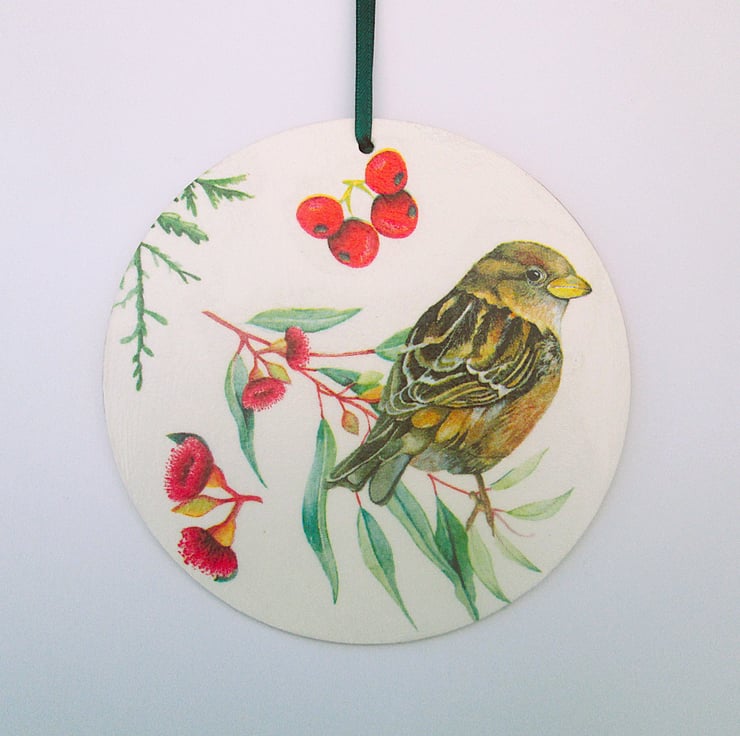 A lovely 10cm decoupage flat wood round ornament is just perfect to add to your indoor decor in any season. With a matching ribbon for hanging, it's ready to hang or to gift. The reverse of the ornament is the natural wood. There maybe an odd crinkle on your ornament, but that is completely normal for anything made with decoupage.