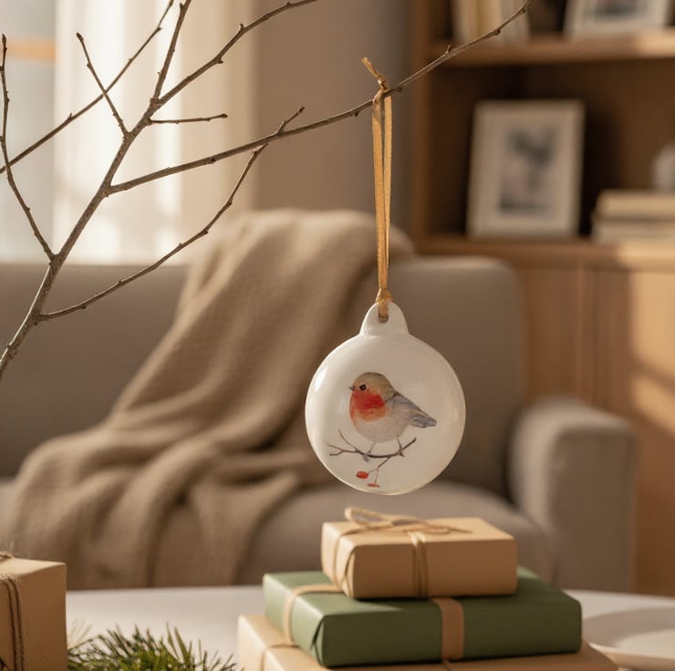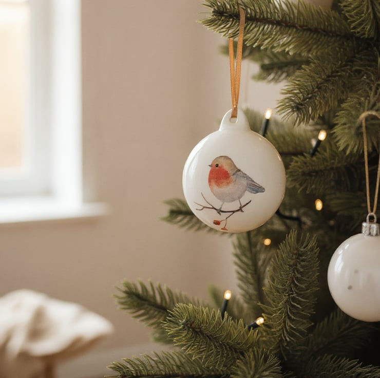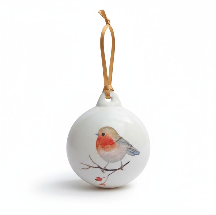 This Robin and Berries ceramic bauble is perfect for adding a touch of charm to your Christmas tree or as a unique gift for a loved one.