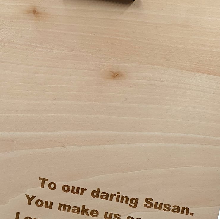 Made from four layers of colourful wood, it measures 29 cm by 29 cm and can be personalised with a special message engraved on the back.
