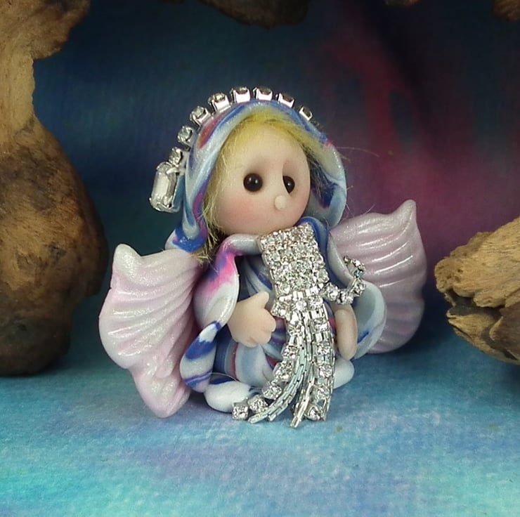 This is a 'one of a kind' creation having been entirely handmade without the use of moulds here at my studio on the Sussex Coast. Created with artist blend polymers, Sheena has sparkling black onyx eyes. Sheena the Celestial Gnome is just one and a half inches tall.