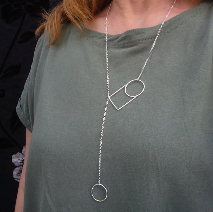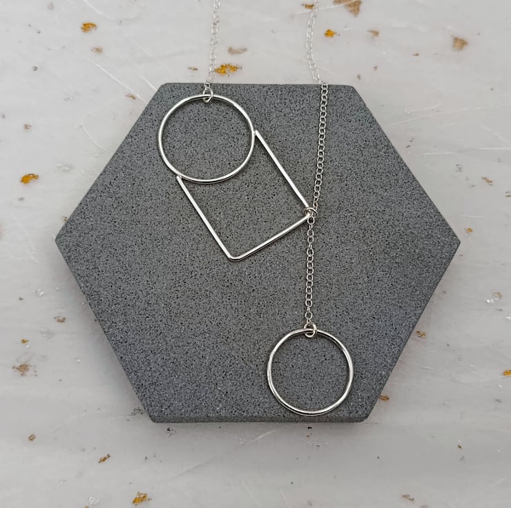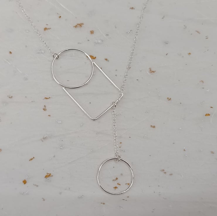 Do you love geometric shapes? This circle and square lariat style necklace would suit someone who wears minimalist jewellery.