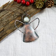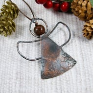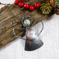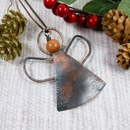 I have created the bag charm using thick 7mm wide copper wire, cut and shaped and textured on the back. I next made the little silver heart, shaped by hand from silver wire and soldered in place. Hand stamped the words live and love and then added a 6mm denim blue aventurine gemstone securely wire wrapped with silver wire. Fitted to a steel spiral ring, but could easily be removed and worn as a pendant if desired.