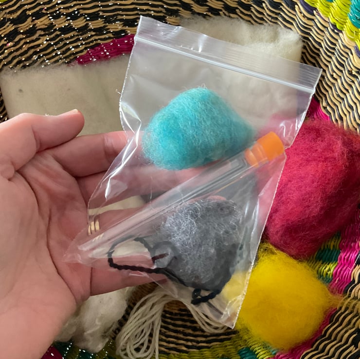 Your kit comes packaged in plastic bags to keep the wool safe from moisture and moths. Please reuse the packaging!
