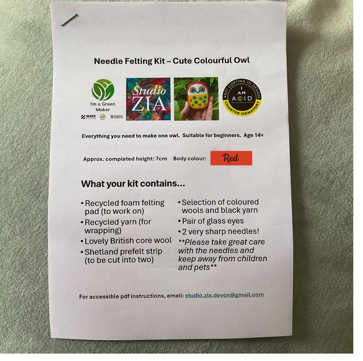 The kit contains sharp felting needles and items that could pose a choking hazard - it MUST be kept away from children and pets. Please be aware this kit makes a decorative art work. It is NOT suitable for children or animals as a toy.