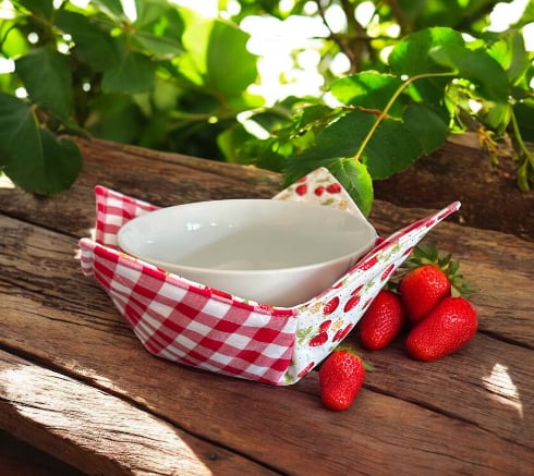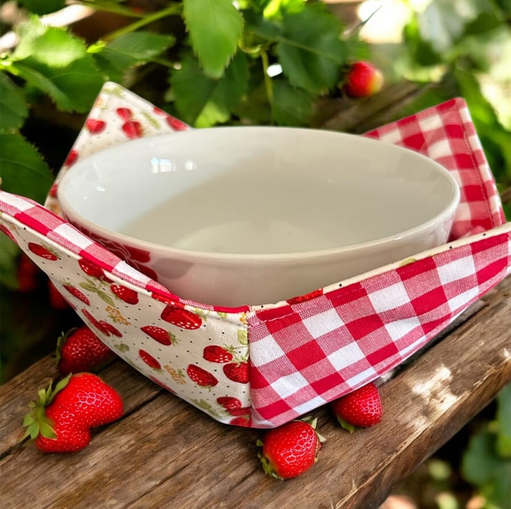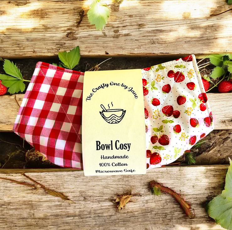 Bring a spoonful of sweetness to your table with our Strawberry Patchwork Cotton Bowl Cosy. Handmade with love and layered for microwave safety, this cosy cradles your bowl with comfort, whether you’re warming up soup, porridge or a late-night treat, a cosy adds that extra level of protection when handling hot bowls.