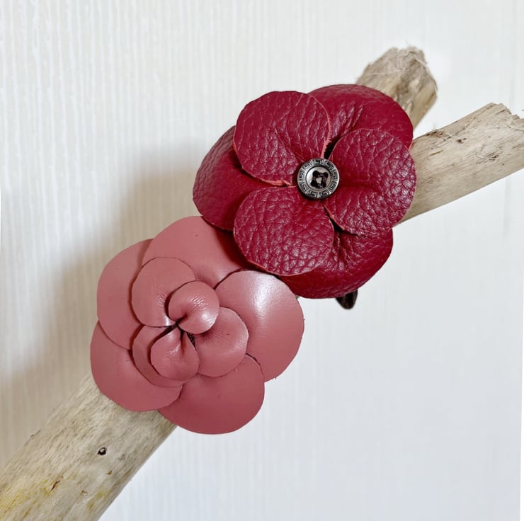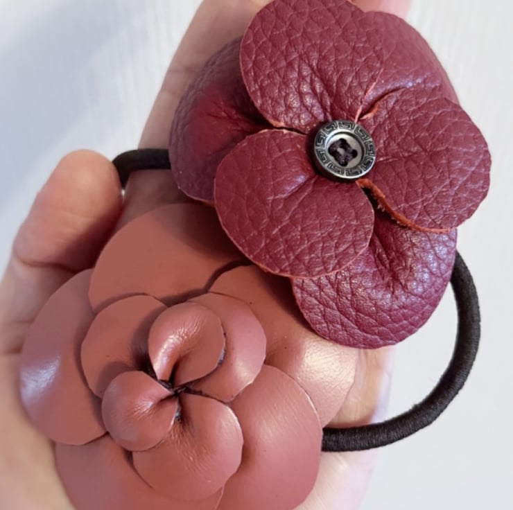 Add a touch of timeless elegance to your everyday hairstyle with this handmade leather camellia flower.
