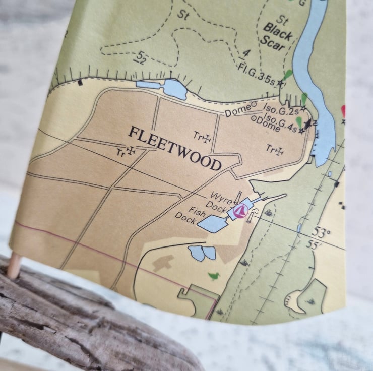 Sails are made from authentic repurposed nautical maps which have been used on voyages around the British Isles, and some may have small handwritten annotations: please check the images to view.