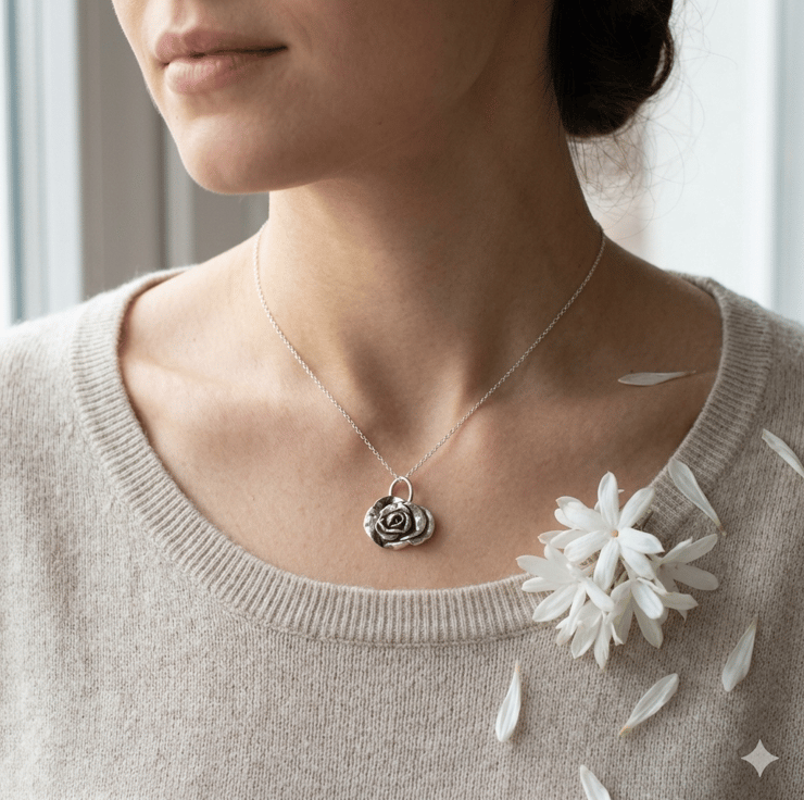 I believe this necklace is perfect for those who appreciate the classic symbolism of the rose—love, beauty, and passion. It can be worn as a statement piece on its own or layered with other necklaces for a more contemporary look. The rose necklace is a thoughtful gift for someone special or a lovely addition to your own jewellery collection, adding a touch of floral elegance and romantic charm to any outfit.