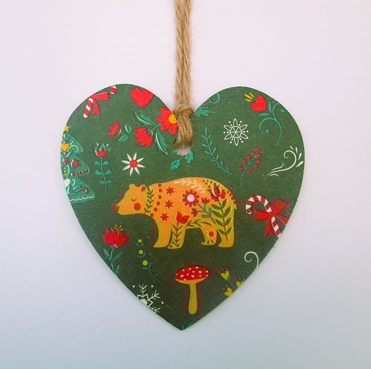 A lovely 10cm decoupage flat wood heart Christmas bauble is just perfect to add to your festive indoor decor this season. With natural jute twine for hanging, it's ready to hang or to gift. The reverse of the bauble is the natural wood. There maybe an odd crinkle on your ornament, but that is completely normal for anything made with decoupage.