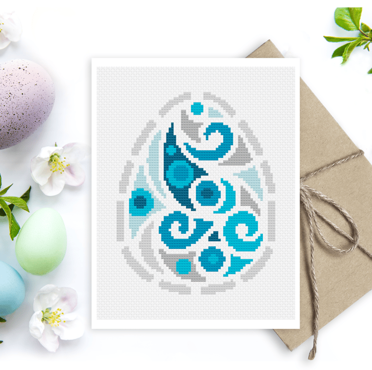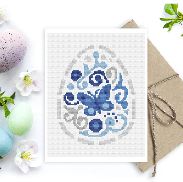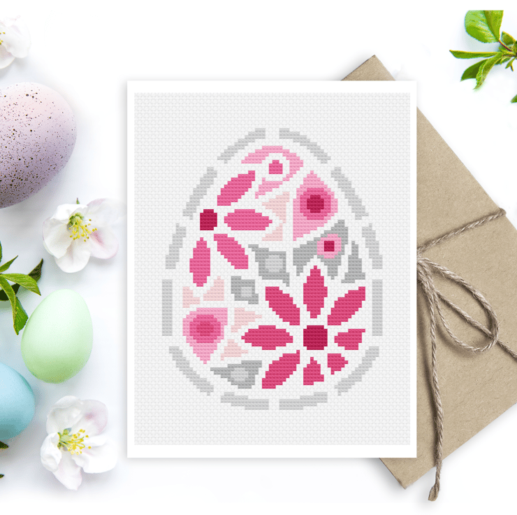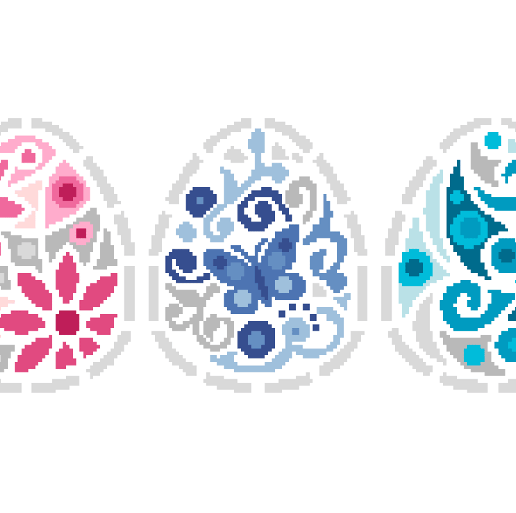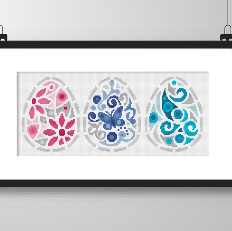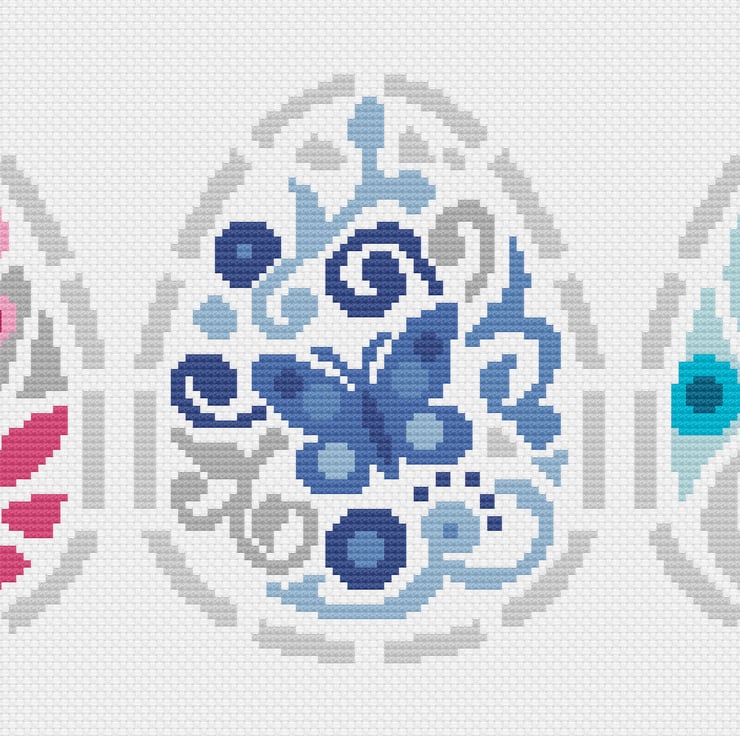 Cross Stitch Three Easter Eggs Greetings card Pattern - Modern easy cross stitch Easter basket design by Vivsters - PDF counted chart 247
