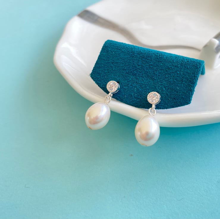 Elevate your elegance with our 8mm Oval Shape White Pearl Earrings, adorned with sparkling zircon accents. Handcrafted from premium sterling silver, the earrings are a stunning blend of classic beauty and contemporary flair.