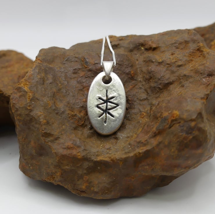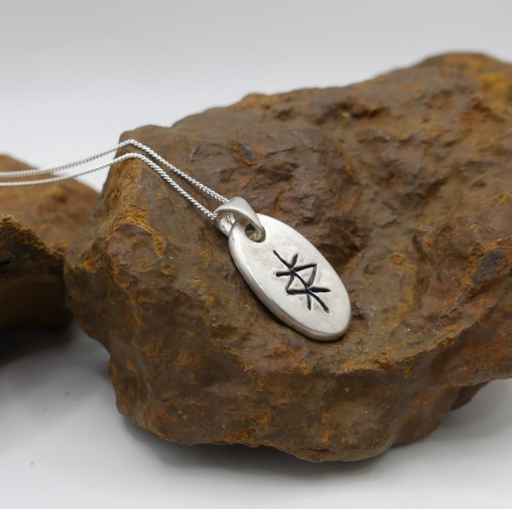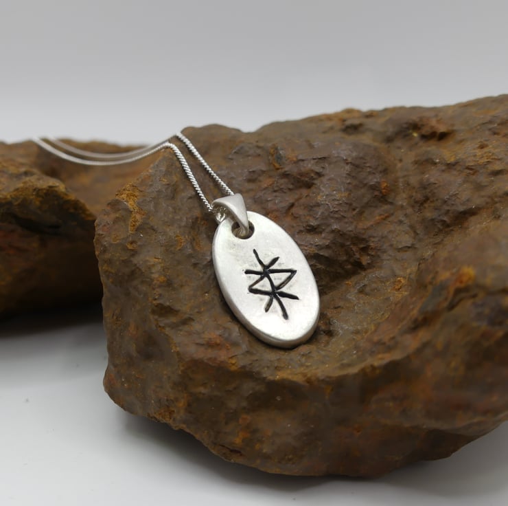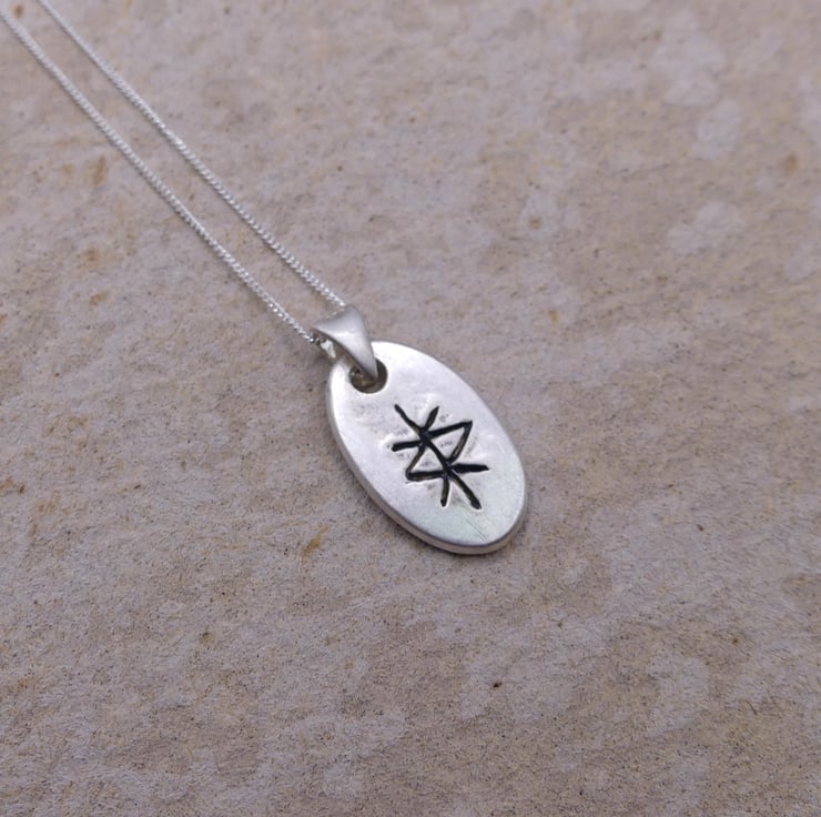 Recycled Sterling Silver Protection Bind Rune Pendant Necklace ECO STS Chain.