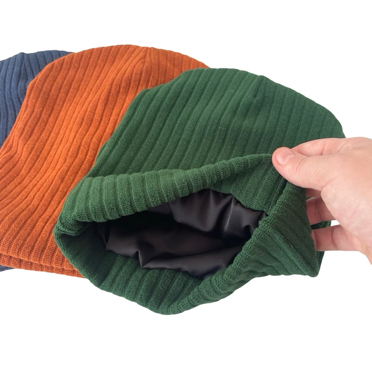 Perfect for chilly days, bad hair days, or simply adding a touch of effortless style, this unisex beanie combines warmth and practicality with a sleek finish. The satin lining makes it especially loved by those who want to keep their hair smooth and healthy.